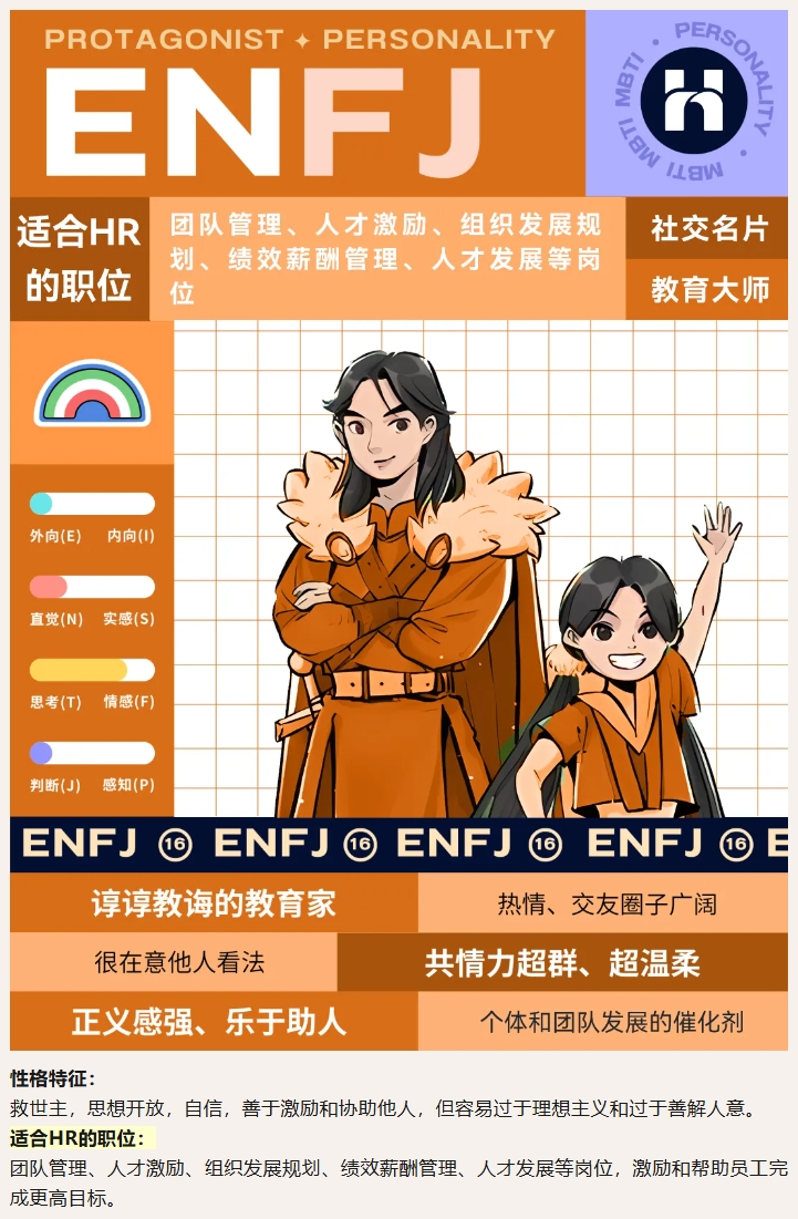 在这里,小编要强调一下,数据只是代表了性格的分布,成功的HR专业人士可以来自任何MBTI类型。每种类型的人都有独特的优势和潜在的成长领域,关键是要了解如何将自己的特质和技能应用于HR的各个方面。个人的兴趣、经验、教育背景和工作态度也是决定HR职业成功的重要因素~